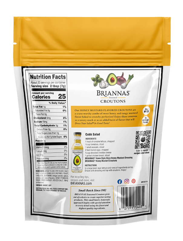 The sweet and savory flavor of sweet honey and tangy mustard are married with crunchy goodness. Dress your salad in good taste or enjoy the baked-in flavor of croutons as a snack without artificial flavors.