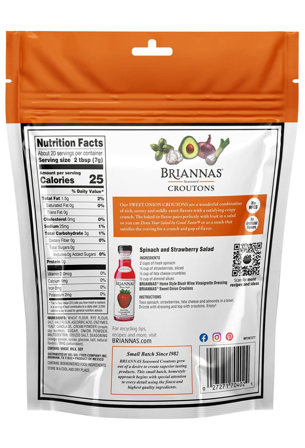 • BRIANNAS Croutons pair perfectly with any of our dressings, creating a delightfully delicious meal.